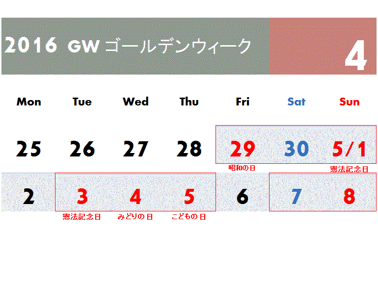 最高のコレクション ゴールデンウィーク 2016 カレンダー 347453